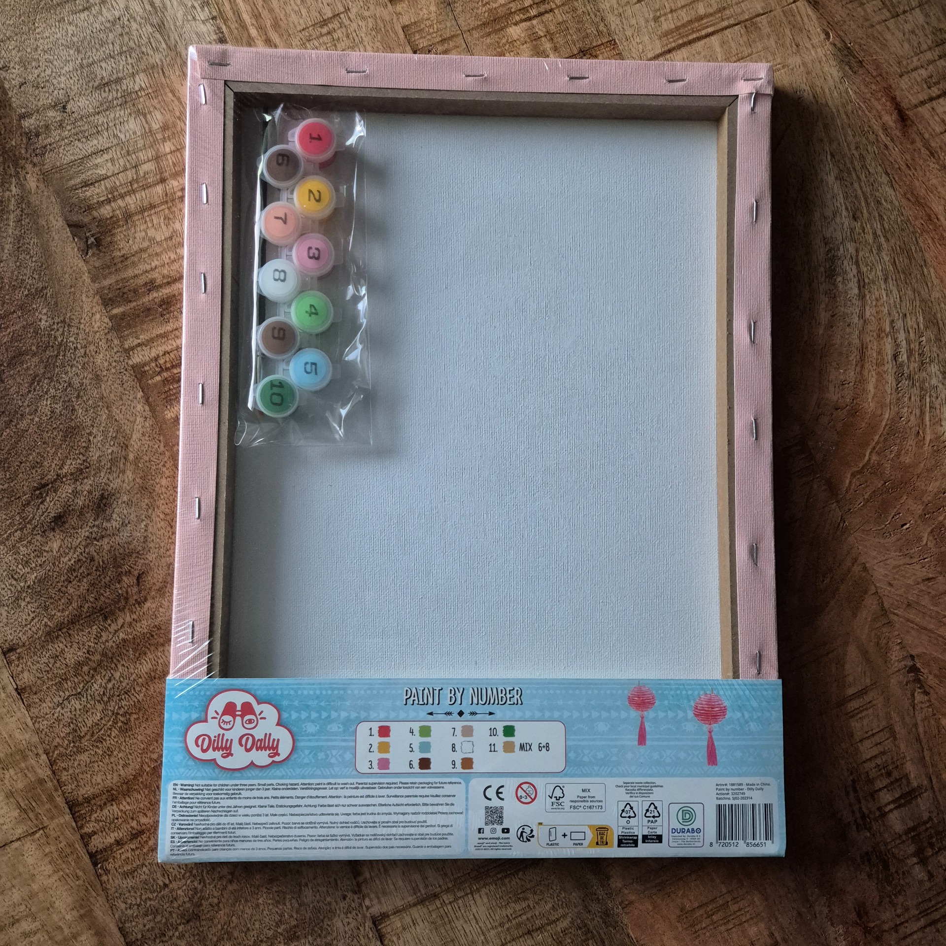 Inclusief 1 penseel en 10 kleurtjes acrylverf