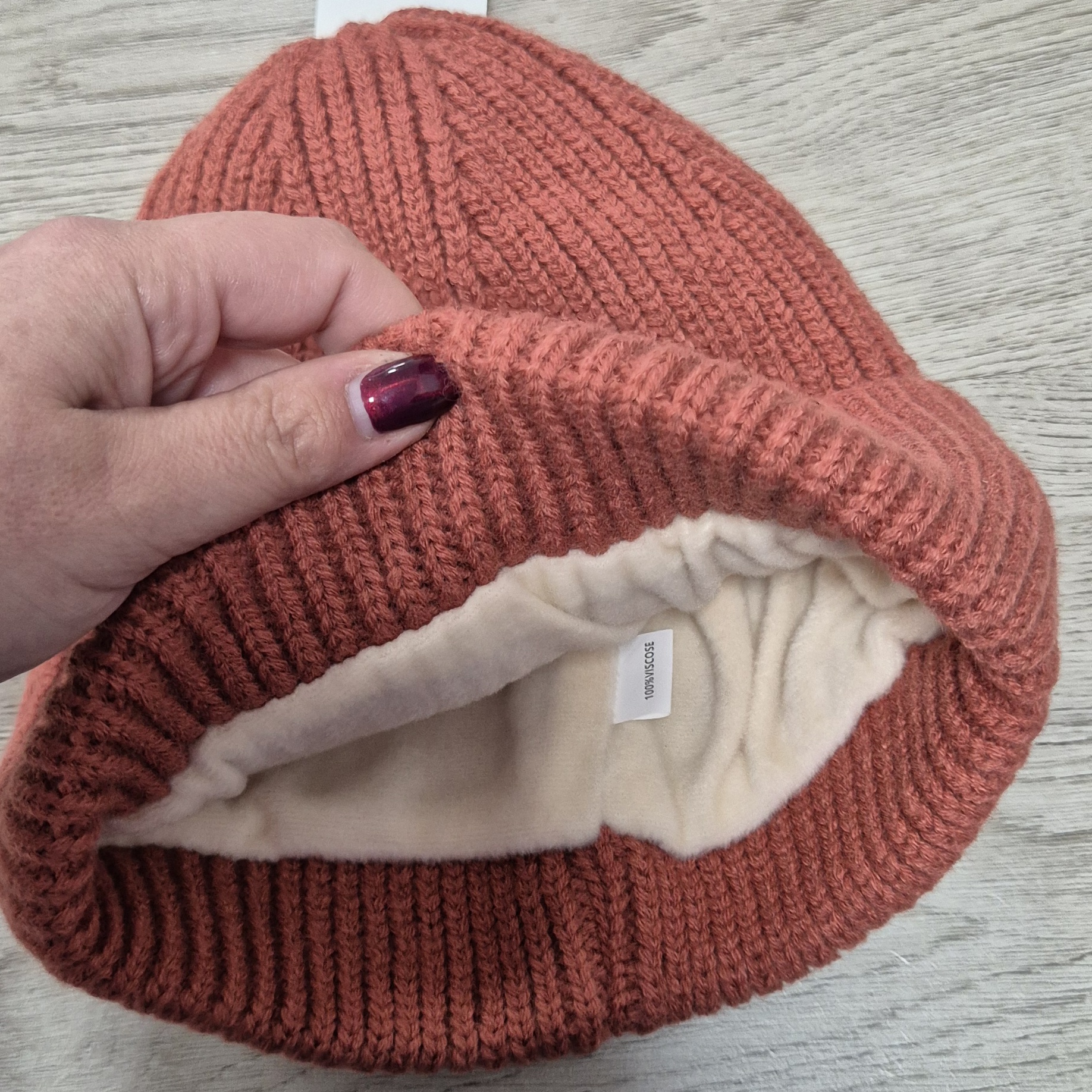 Nieuwe warme gevoerde muts met een geborduurde smiley.