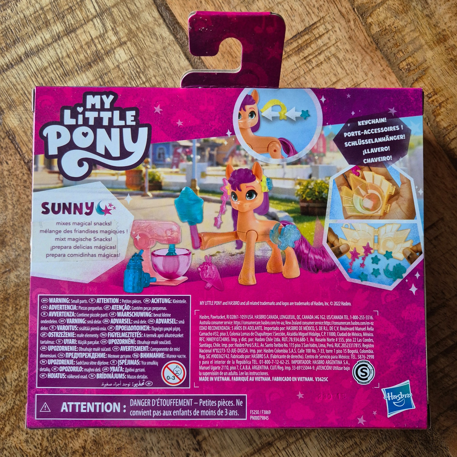 Nieuwe set van My Little Pony met het personage Sunny Starscout. De set wordt op de verpakking beschreven als "Cutie Mark Magic" en bevat 16 onderdelen, waaronder het Sunny Starscout-figuur en verschillende accessoires.